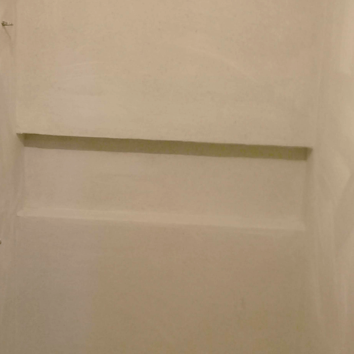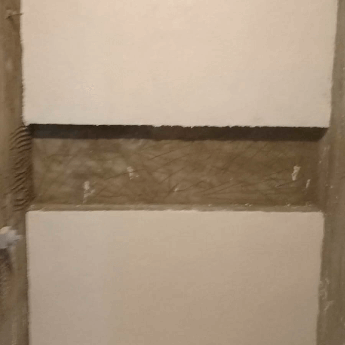 A aplicação é feita em duas camadas: a primeira assegura aderência ao substrato e a segunda define o relevo e o acabamento final. Após a cura, aplicamos selante acrílico transparente para impermeabilizar e facilitar a limpeza.
